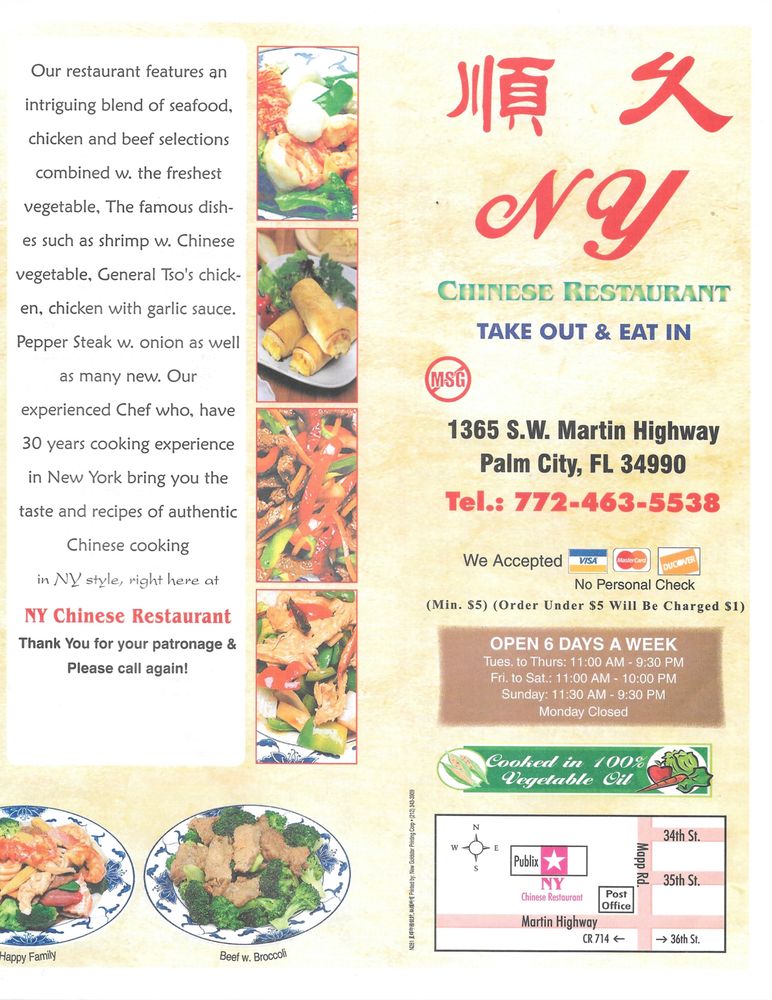 Ny Chinese Restaurant in Palm City, FL, stands out as a top Chinese dining spot offering a range of amenities like takeout, delivery, outdoor seating, and catering services. Customers rave about the fresh and delicious food, particularly praising the chicken dishes. The friendly staff and efficient service add to the overall dining experience. The attention to detail, cleanliness, and well-organized kitchen further impress patrons. With sizable portions and affordable prices, Ny Chinese Restaurant has become a go-to for many, surpassing other Chinese eateries in the area. The ambiance of this family-owned establishment adds to the authenticity and appeal, making it a must-visit for those craving quality Chinese cuisine.
